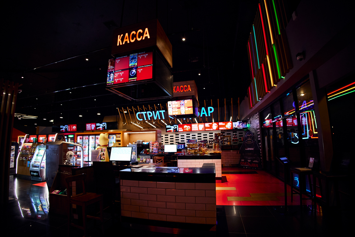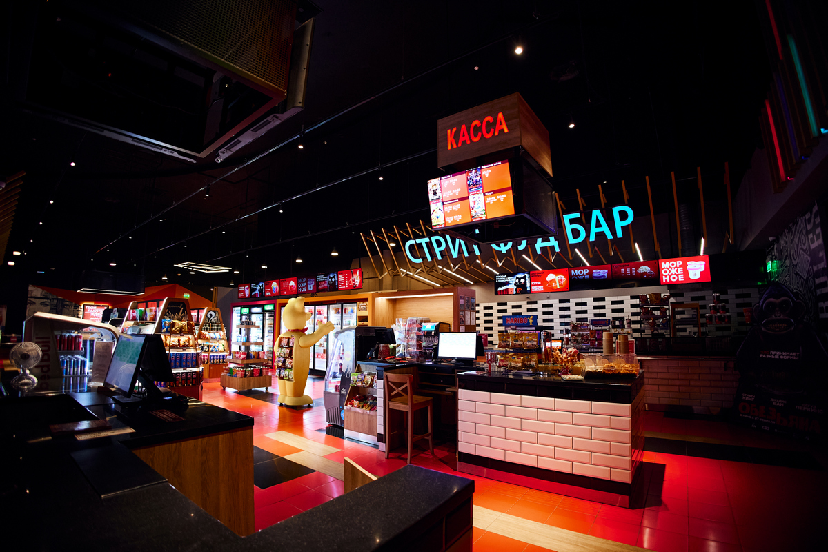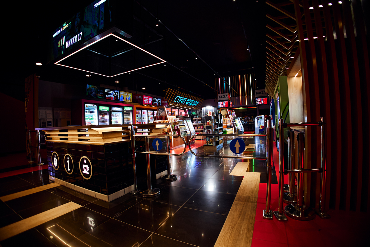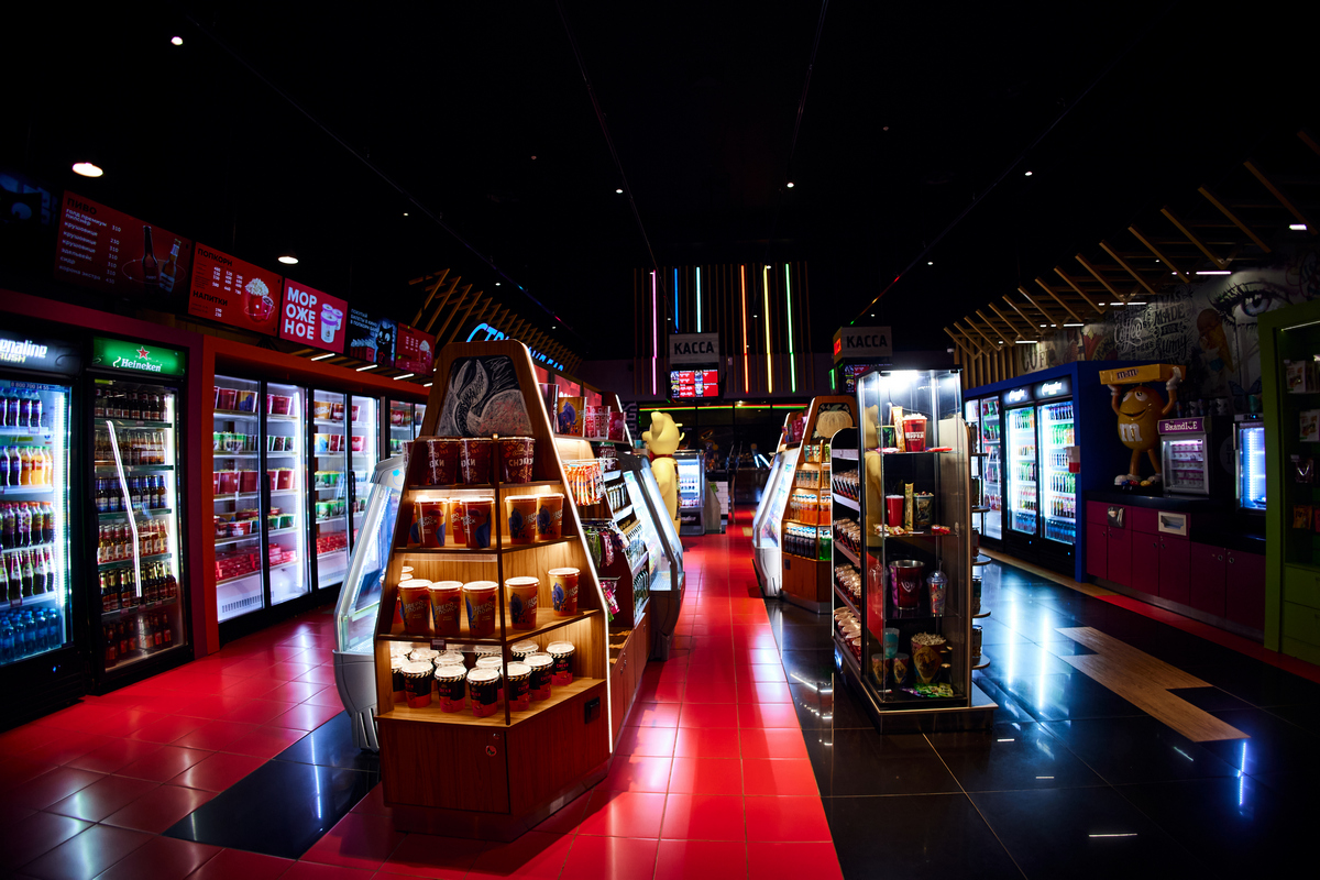 В кинотеатре работает бар, где можно заказать напитки, снеки и попкорн, чтобы просмотр любимого фильма не был омрачён внезапным чувством голода.